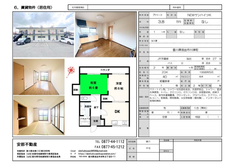 安部不動産 » 香川県坂出市川津町2DK賃貸アパート(NEWサンハイツK)
